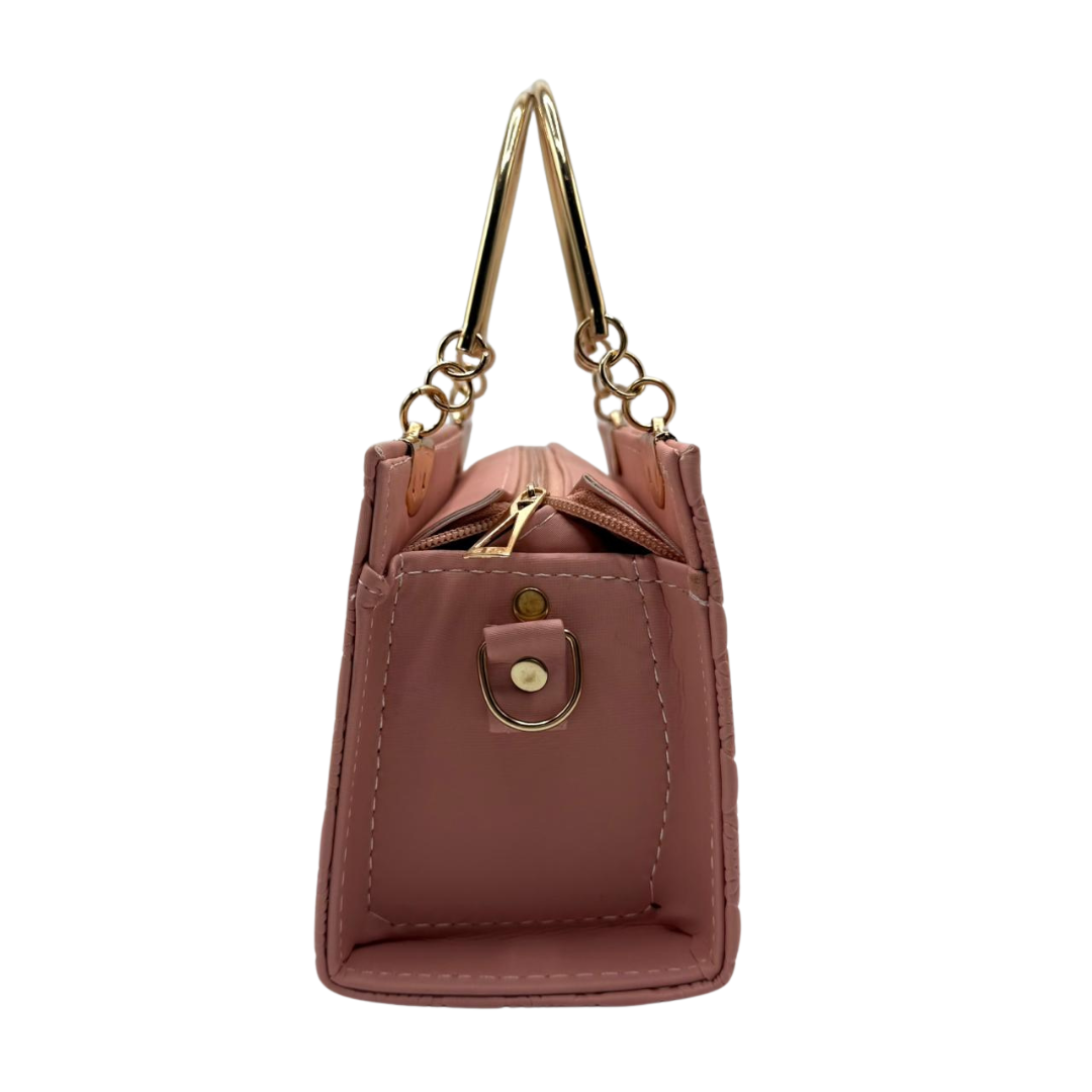 Add a touch of class to your outfit with this Dior-inspired pink handbag from Zarq Bazaar. Designed with luxurious gold handles and a chic structured silhouette, this bag blends feminine elegance with modern fashion.